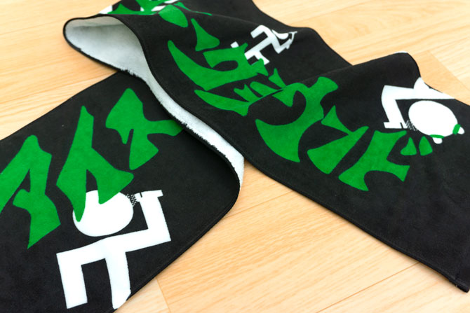 黒白緑のコントラストがはっきりしたタオルに仕上がりました。
