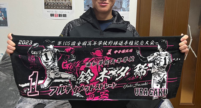 が、今大会、御社の応援タオルを毎回皆で装備し、校歌斉唱の際には両手でかかげ試合のたびに汗と涙をぬぐってまいりました。