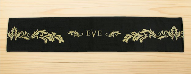 イラストレーターで入稿していただき、オリジナルのマフラータオルを製作させていただきました。黒のベタプリントでゴールド(黄土色で代用)です。