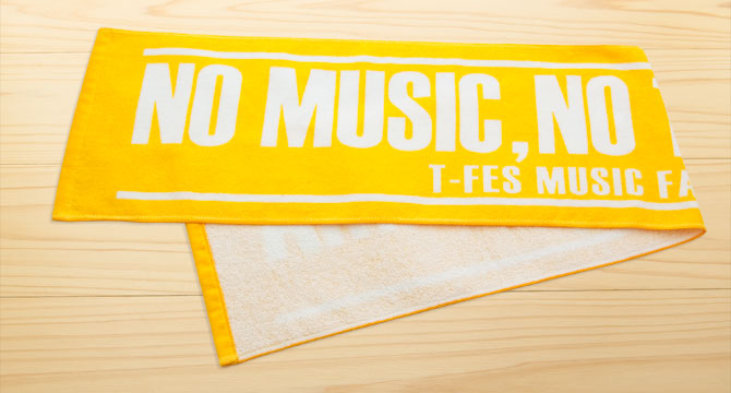 度島音楽イベントのオリジナルマフラータオルです。作りたいタオルのイメージをエクセルを使って伝えていただき、イメージに沿って写植トレース校正後、オリジナルのマフラータオルを製作させていただきました。