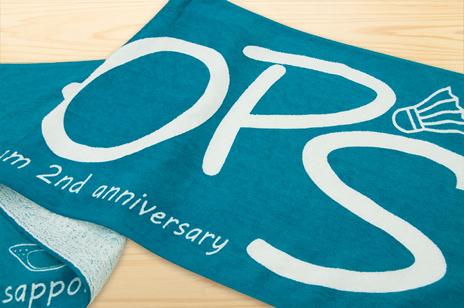 イラストレーターの完全データで入稿いただき、オリジナルのスポーツタオルを製作させていただきました。ブルーグリーン(エメラルドグリーン)1色の記念品スポーツタオルです。